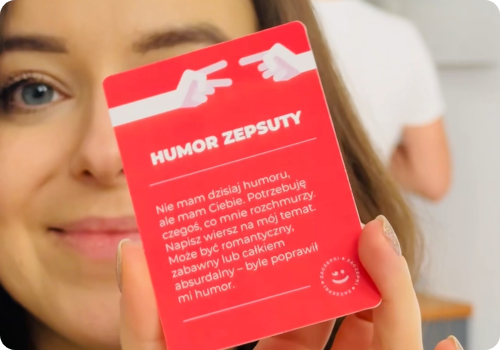 Dostajecie dwa zestawy kart, które rozdzielacie między sobą. Od tego czasu każdy z Was może zagrać kartę w najbardziej niespodziewanym momencie. Karty zawierają zabawne i nieoczekiwane wyzwania, które druga połówka musi wykonać. Od zamiany talerzy w restauracji po zakaz odzywania się przez 60 minut. Rozgrywka dodaje więcej rywalizacji i spontaniczności do Waszej codzienności.